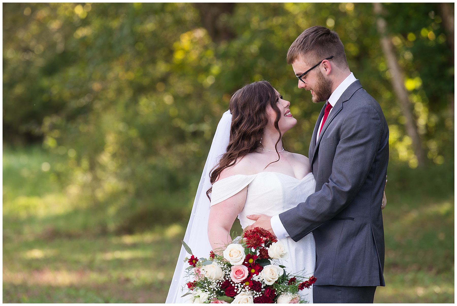 Even though we had had some crazy storms in other parts of the South, the sun was out and beautiful for Marissa and Brayden’s wedding. Some of the leaves had just started their slow turn to yellow and it made the perfect background for their ceremony. Marissa’s dress was so shimmery in the sun and even though she kept finding glitter on her, I think it was worth it. She even took a few minutes during the reception to change into her mother’s wedding dress for her dance with her dad. This couple had a wonderful group of people supporting them and a beautiful day. Congratulations Marissa & Brayden!! I hope it was everything you dreamed of.