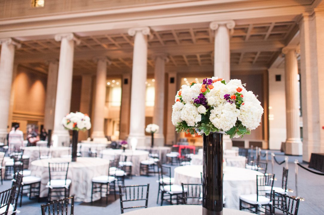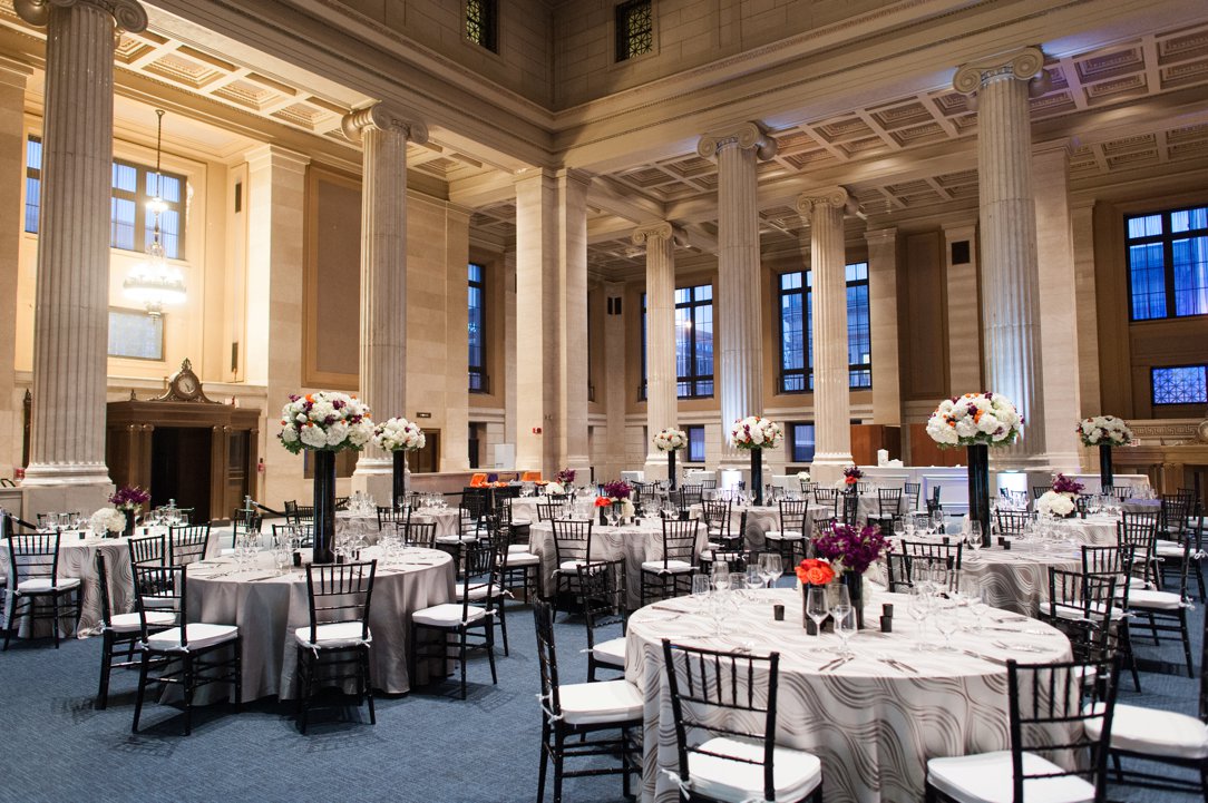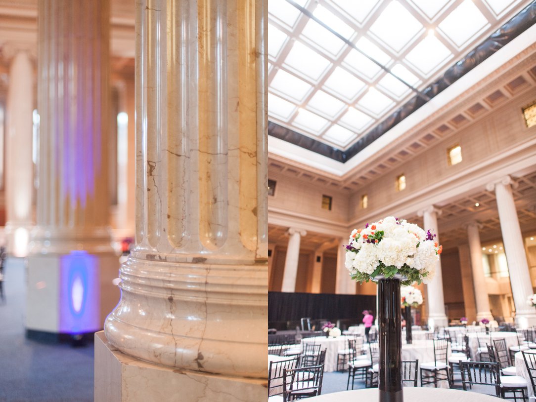 The event that was going on when I went to view The Columns at One Commerce Square had tons of space for so much. They had a stage and several gorgeous tables set up and decorated for their guests to have dinner. There was a dance floor and off to the sides, there was plenty of room for couches so people could sit away from the band and have a conversation. Then just down the stairs is the bank vault that could be used as a bar or just some extra space during a wedding. If this is a place you haven’t seen yet and you want something breathtaking and elegant for your wedding or reception, you should definitely get in touch with them and take a tour.